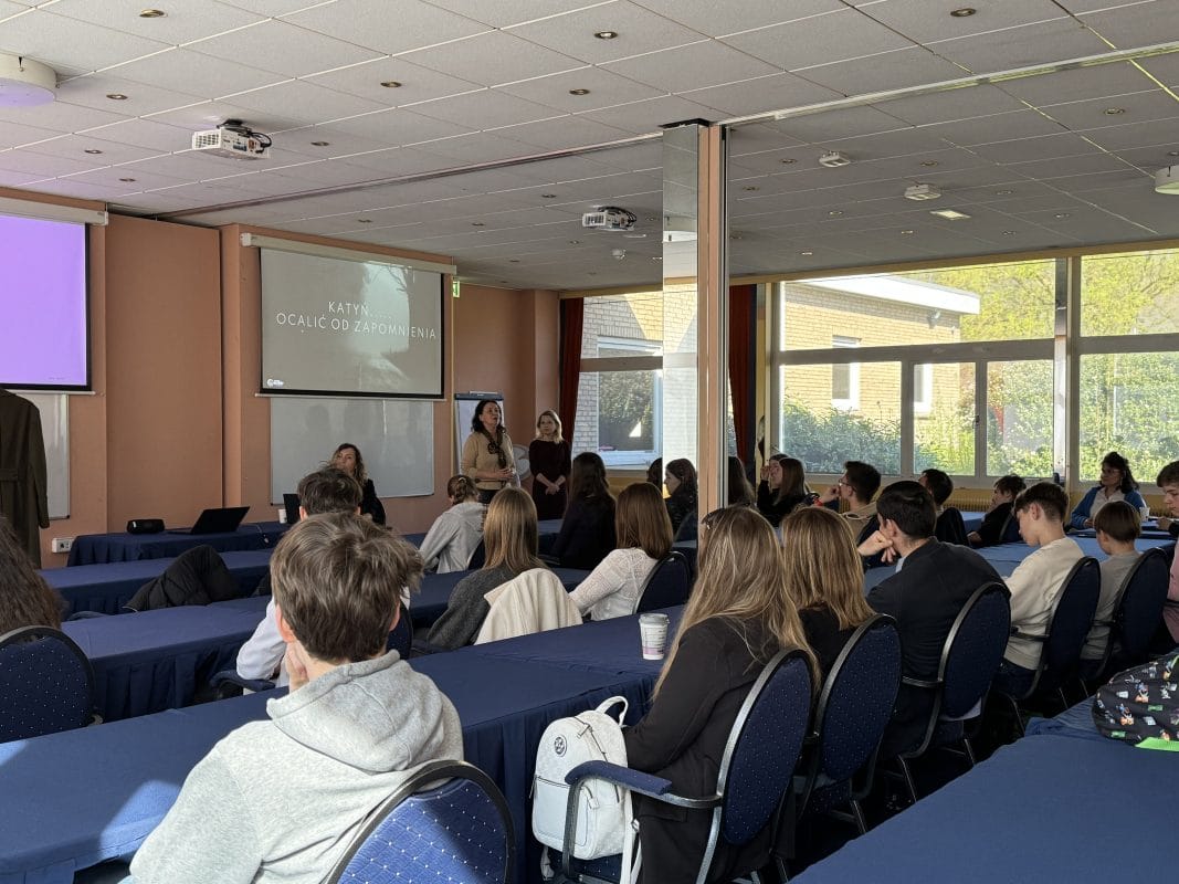 Schooldirectrice mevrouw Bożena Cichy gaf een presentatie over het bloedbad van Katyn, de historische achtergrond en de verstrekkende gevolgen ervan. Daarnaast besprak literatuurdocente mevrouw Jolanta Żukowska de artistieke invloeden in de geprezen film Katyn van Andrzej Wajda en hoe deze bijdragen aan het bewaren van het collectieve geheugen.
